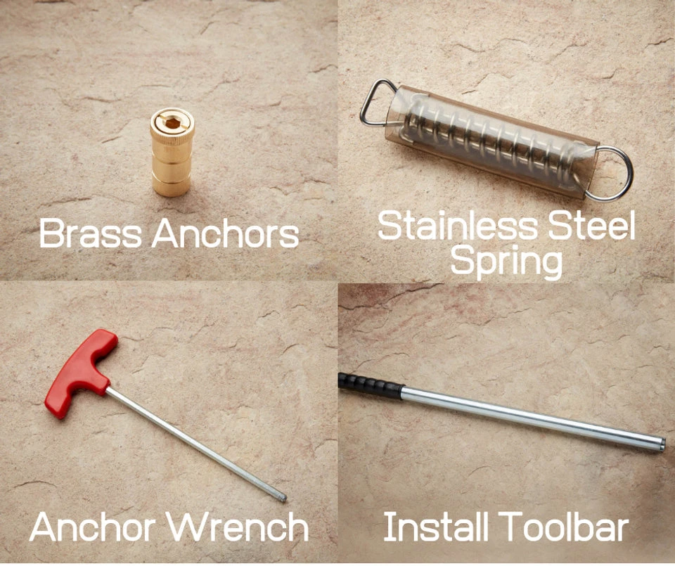 - Includes: Brass Anchors for Concrete deck, Stainless Steel Springs, Anchor Wrench and Install toolbar