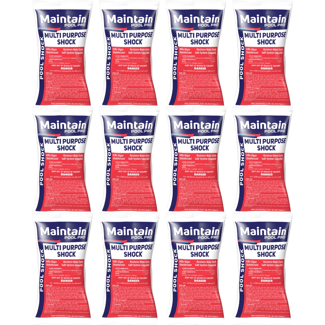 Dosage: 1lb per 10,000 gallons water for shock treatment, more if algae is present.
