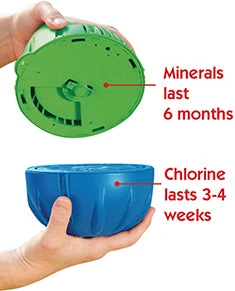 That portable backyard pool is there for one reason – FUN! Flippin’ FROG keeps it that way with its patented minerals and a low dose of chlorine in an easy-to-use, easy-on-the-pocket, dual cartridge system. Best of all, it flips over when the chlorine is empty and needs to be replaced. average is 2-4 weeks depending on chlorine demand.