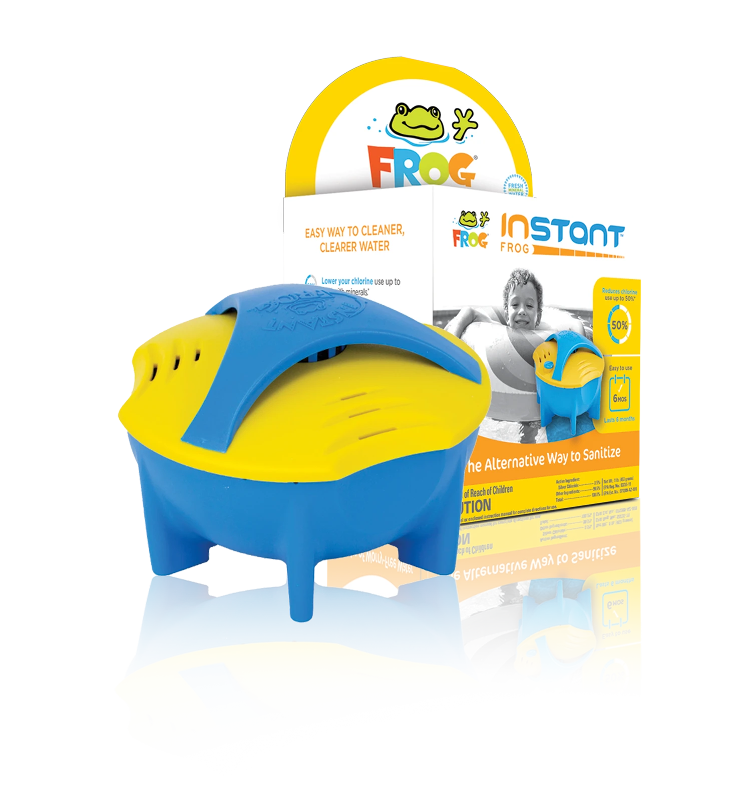 For in ground pools up to 25,000 gallons, with no room for installing a complete FROG Fresh Mineral Water® Pool System, theres Instant FROG. This insurance policy against bacteria sits in the skimmer basket of your pool and lasts all summer, while reducing chlorine use and making pool care an instant success. The Instant FROG Mineral Pool Sanitizer uses the same revolutionary mineral formula and technology as our POOL FROG® products and reduces chlorine use by up to 50%, resulting in less skin irritation, faded bathing suits and a cleaner feeling pool.