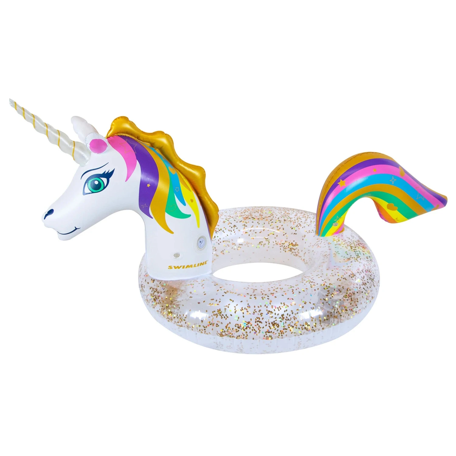 Be a unicorn in a field of horses! Be one of a kind floating on the LED unicorn ring! Sparkle wherever you float with the unicorn shaped glitter inside for added glamour and glitz.