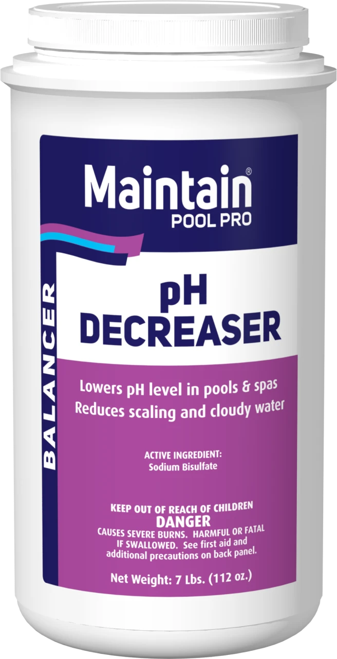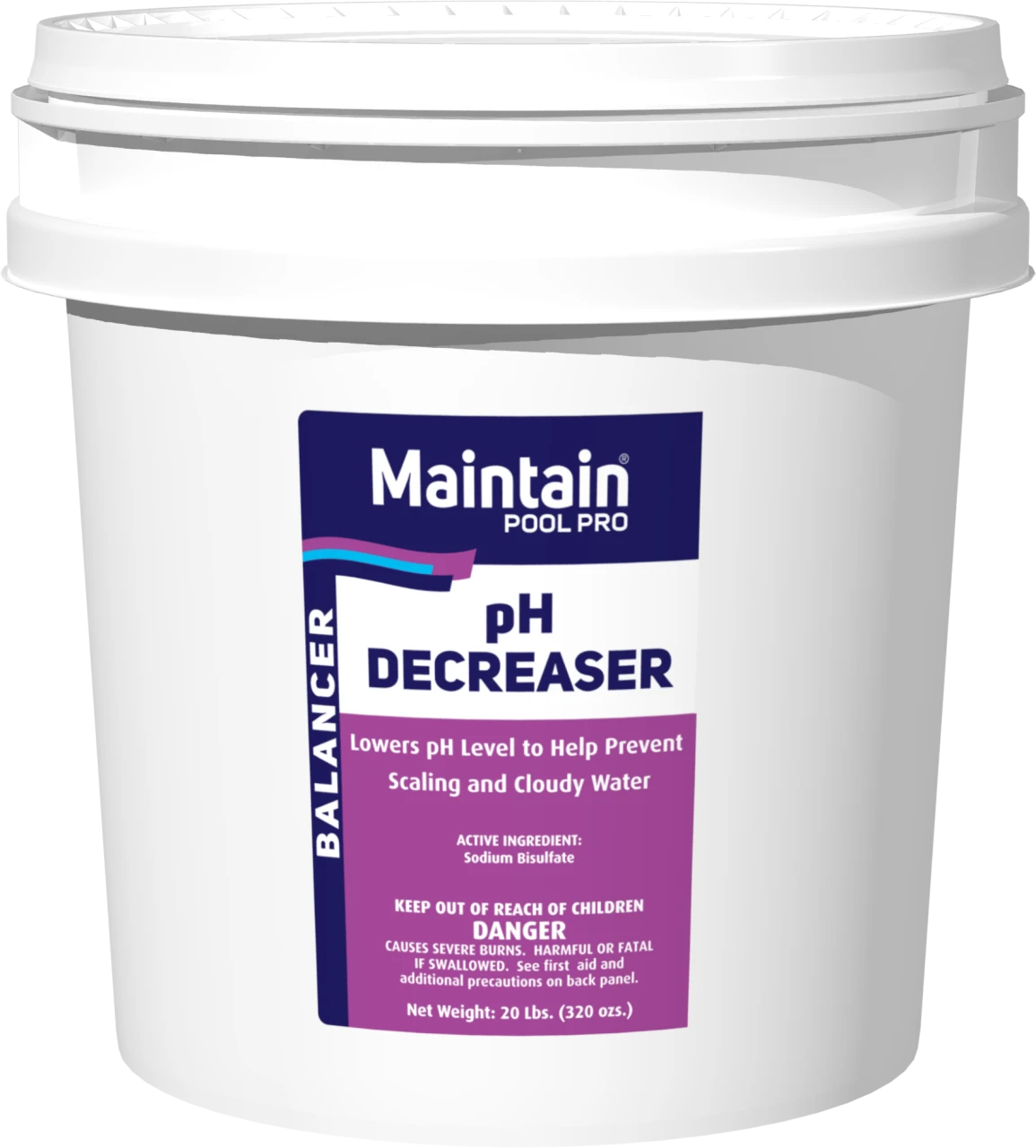 First establish the pH of pool water with a good quality water test kit. Determine the amount of pH minus needed. With your pool pump running broadcast the pH reducer of the deepest part of the pool. For shallow pools, dissolve in a pail of water before adding to pool. Always have your pool pump running when adding this chemical.