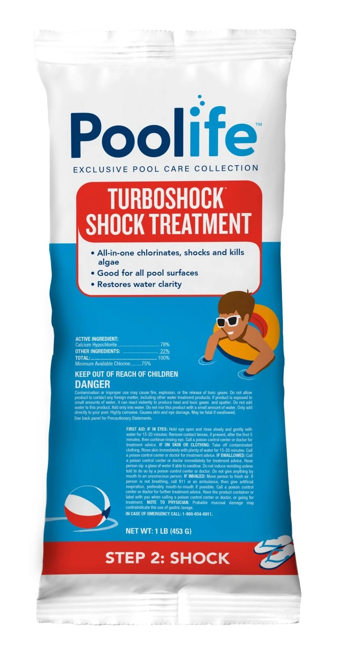 Poolife Turbo Shock is a powerful treatment with minimum 75% available chlorine. The TurboShock works fast to combat algae and bacteria.Â