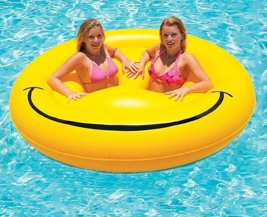 Hang out with a happy face! Fun for all to enjoy in the swimming pool, lake or river! 72″ Inflatable Island. Heavy duty vinyl construction.