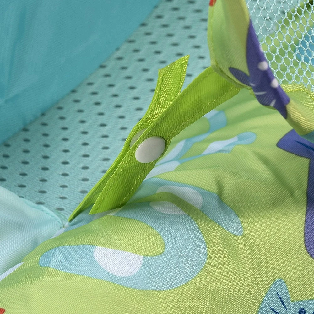The SwimWays Infant Baby Spring Float with Sun Canopy is a fabric-covered baby float for infants.
